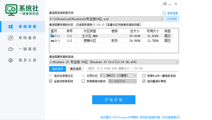 智能检测当前电脑配置信息,自动分析适合电脑配置的最佳重装系统 版本,不强制安装,保证系统可运行