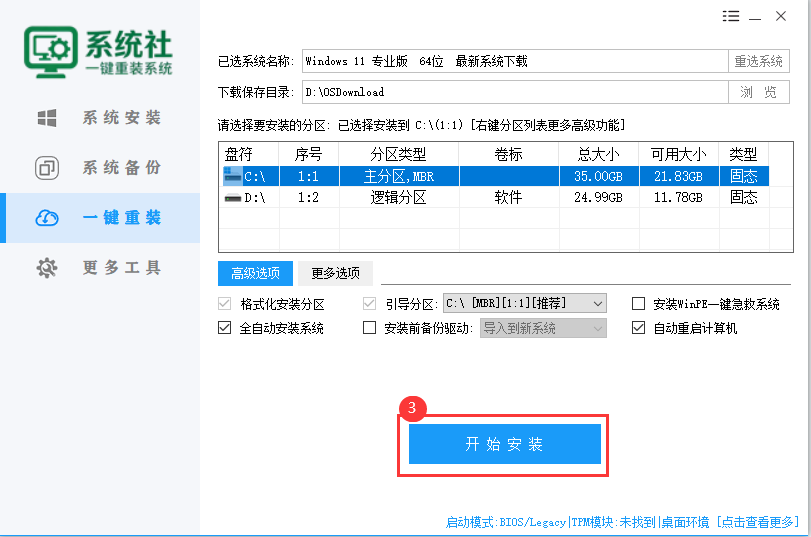 出来下图页面点击③【开始安装】。如下图所示