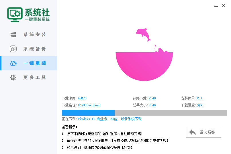 以上就是系统社一键重装系统重装系统教程,有不懂的如何使用系统社一键重装系统重装系统的用户,可以尝试多看几遍以上的使用教程操作看看,希望以上教程可以给大家带来更多的帮助。